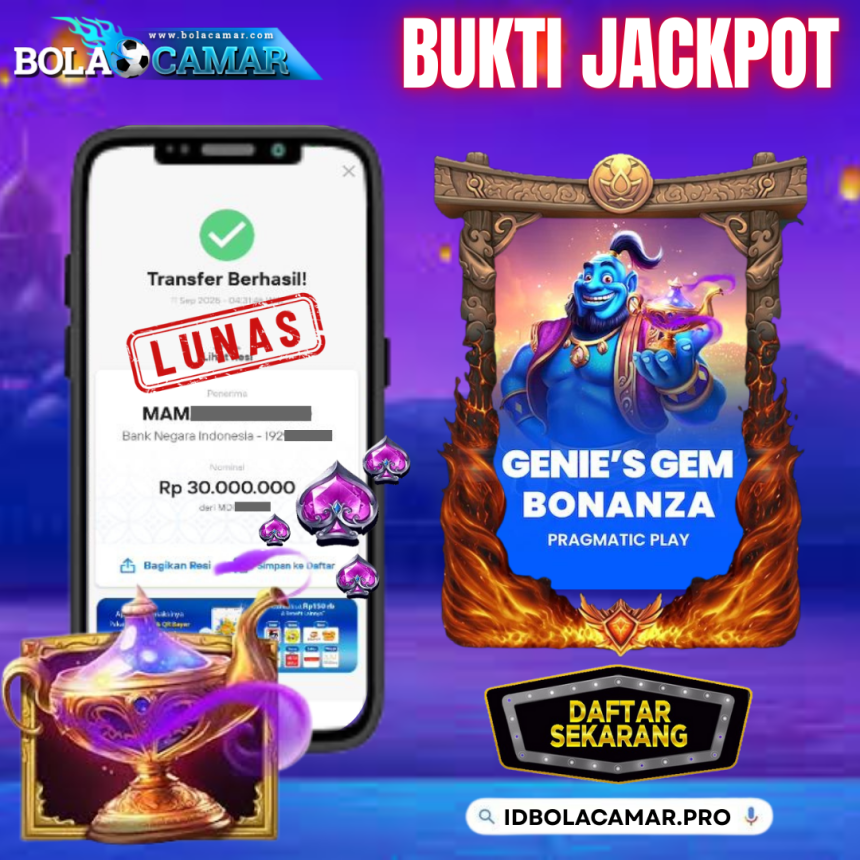 Salah satu pemain setia kami, dengan ID member MAM****, berhasil memenangkan jackpot senilai Rp 30.000.000 dari permainan slot GENIES GAME BONANZA hanya dengan modal Rp 2.000.000 saja!