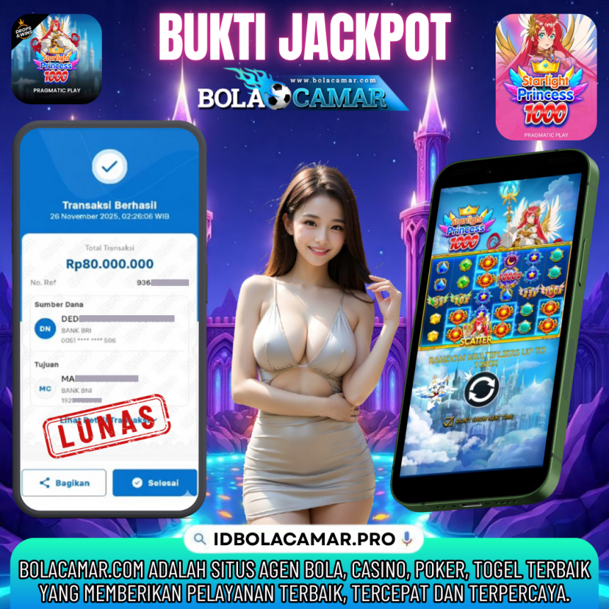 Kabar gembira datang dari platform BOLACAMAR, situs terpercaya untuk permainan slot online dan taruhan parlay! Kami mengucapkan selamat sebesar-besarnya kepada para member setia yang berhasil meraih jackpot fantastis dan kemenangan besar di minggu ini.