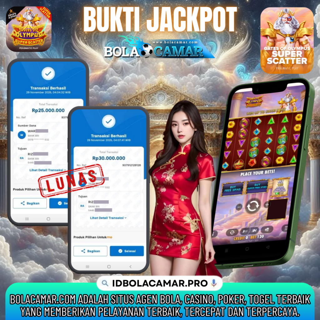 Kabar gembira datang dari platform BOLACAMAR, situs terpercaya untuk permainan slot online dan taruhan parlay! Kami mengucapkan selamat sebesar-besarnya kepada para member setia yang berhasil meraih jackpot fantastis dan kemenangan besar di minggu ini.