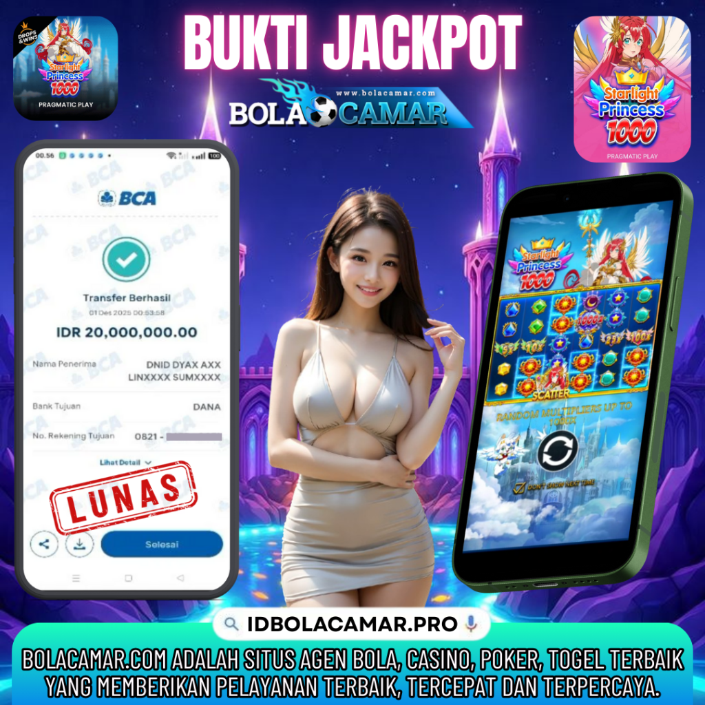 Kabar gembira datang dari platform BOLACAMAR, situs terpercaya untuk permainan slot online dan taruhan parlay! Kami mengucapkan selamat sebesar-besarnya kepada para member setia yang berhasil meraih jackpot fantastis dan kemenangan besar di minggu ini.